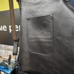 Фартук из натуральной кожи с именной гравировкой на нагрудном кармане.